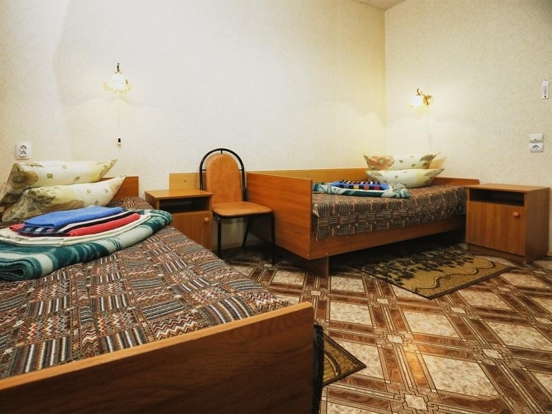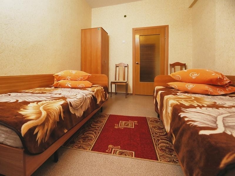 Оснащение номера: две полутораспальные кровати, стол, стул, тумбочка, шкаф, телевизор, доп.место - евро раскладушка и размещение ребенка до 5 лет без места